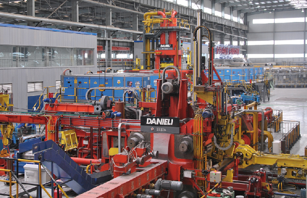 引進意大利達涅利25MN立式擴孔機及63MN臥式擠壓機,擠壓最高速度300mm/s,最大擠壓力62.17MN;擠壓管規(guī)格:Φ57~325mm×4.5~60mm;擠壓管長度:4000~24000mm;單支坯料重量可達:1.5t;擠壓管精度:直徑偏差±1%;壁厚偏差±8%。 熱擠壓工藝為三向壓應力受力條件,可生產(chǎn)圓管、方管、異形管、型材等擠壓品,對于高溫合金等難變形金屬的生產(chǎn)有較大的優(yōu)勢。