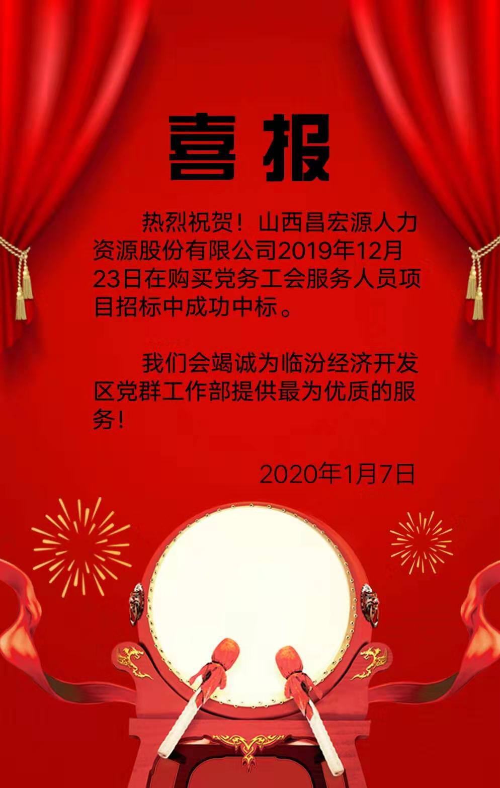 熱烈祝賀我公司在購買黨務(wù)工會服務(wù)人員項目招標(biāo)中一舉中標(biāo)
