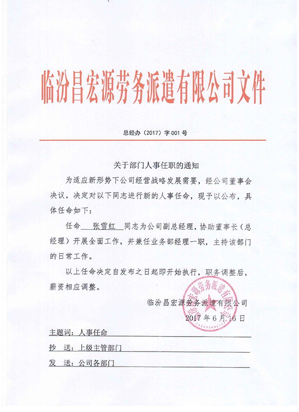 關(guān)于部門(mén)人事任職的通知