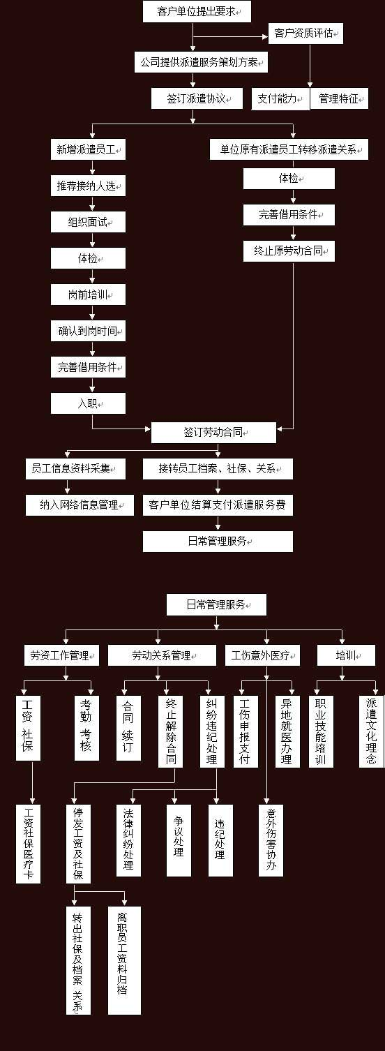 (4)提出派遣方案:根據(jù)不同用工單位要求及現(xiàn)有狀況,制定勞務(wù)派遣方案;